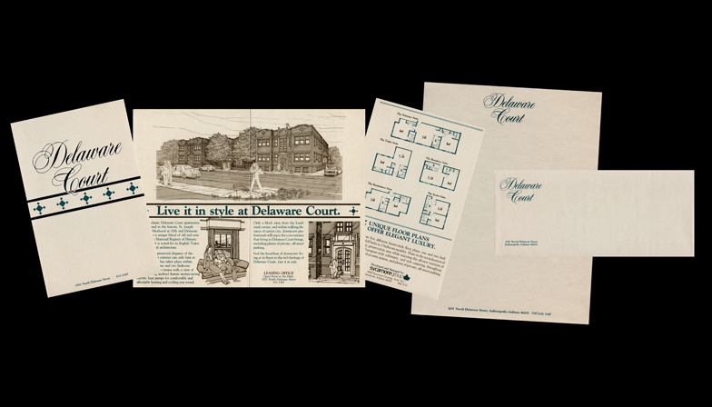 ..a 8-1/2x11 one fold brochure for apartments within a historic building. 2 colors of ink with a silver foil stamped logo. I did all illustrations, logo design and the stationary as well.