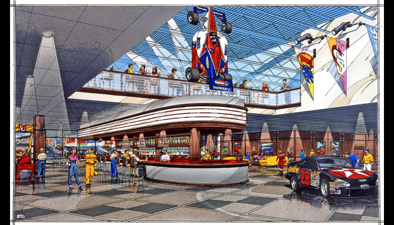 ...a design for the indoor restaurant/bar of a pro karting facility with Nascar theme.
