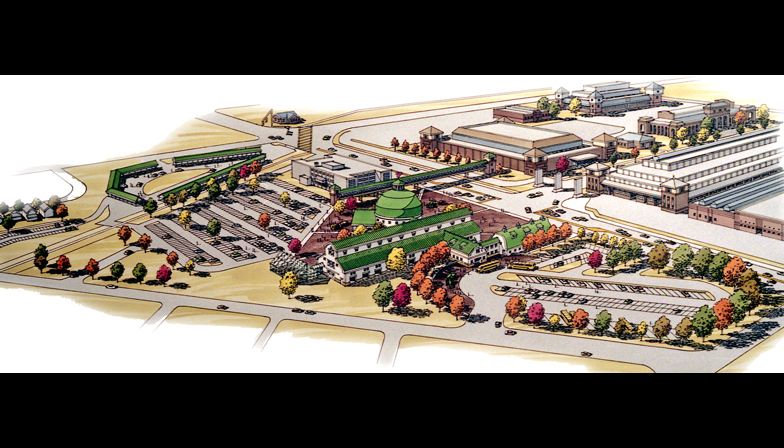 ...an aerial showing the new location of an exhibit hall for the state fair with reference to the main entry.