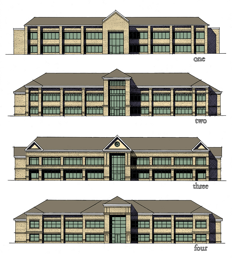 Typical facade design presentation for a corporate office building.