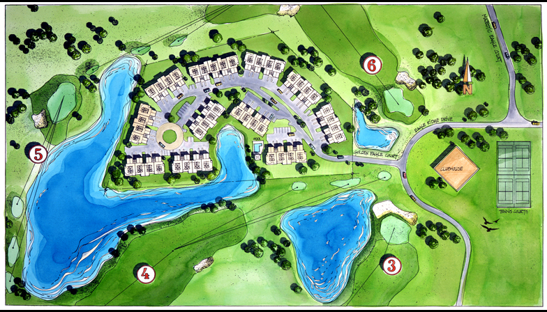 ...a layout for a golf course community, showing several holes alongside the condo units.