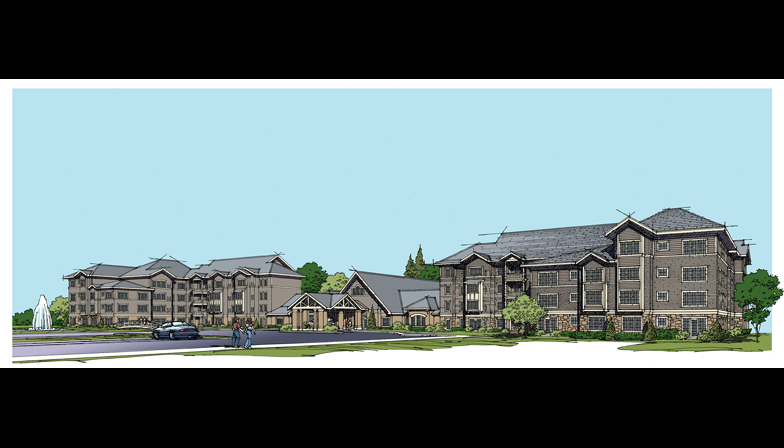 ...hand drawn line art with computer color / retirement /assisted living condos....