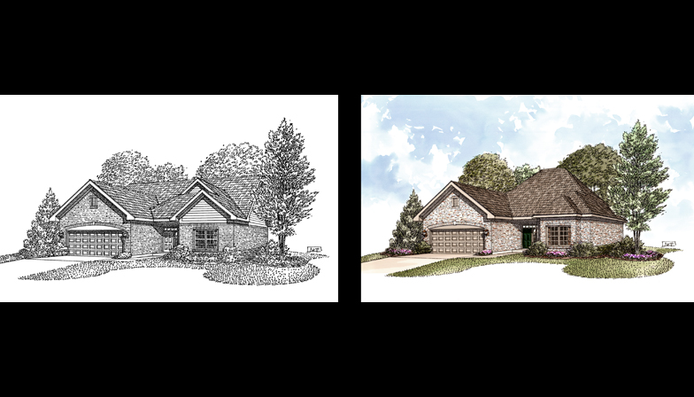 ....a rendering showing Black & White lineart and after