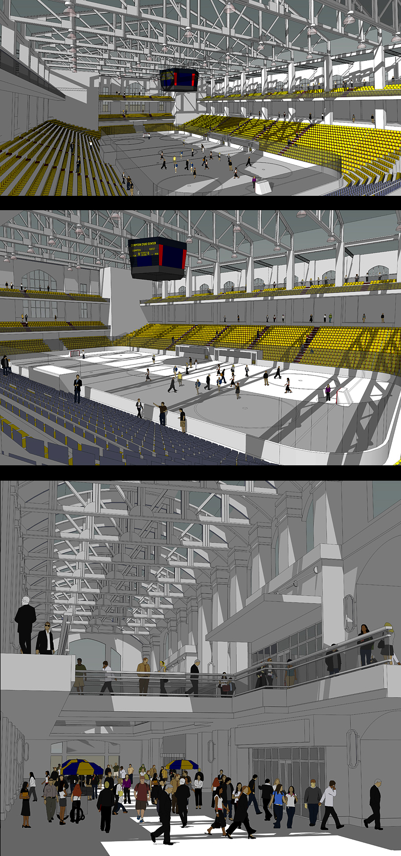 The 3D model I created for the interior of the Notre Dame Hockey arena project.